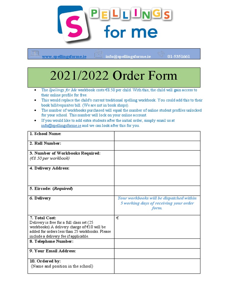 Spellings For Me Order Form PDF