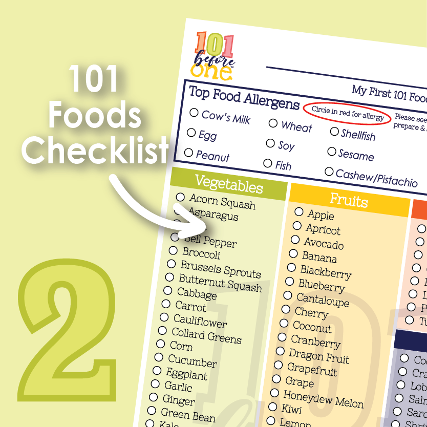 101 Before One Checklist Printable - Vegetables, fruits, meat & egg, seafood, grains, nuts & seeds, and beans &. Either way, you can print these out at home to reference. 101 before one shows you how to introduce solids with baby led weaning. A happy, healthy eater starts with.