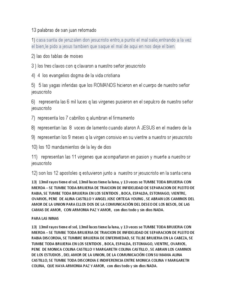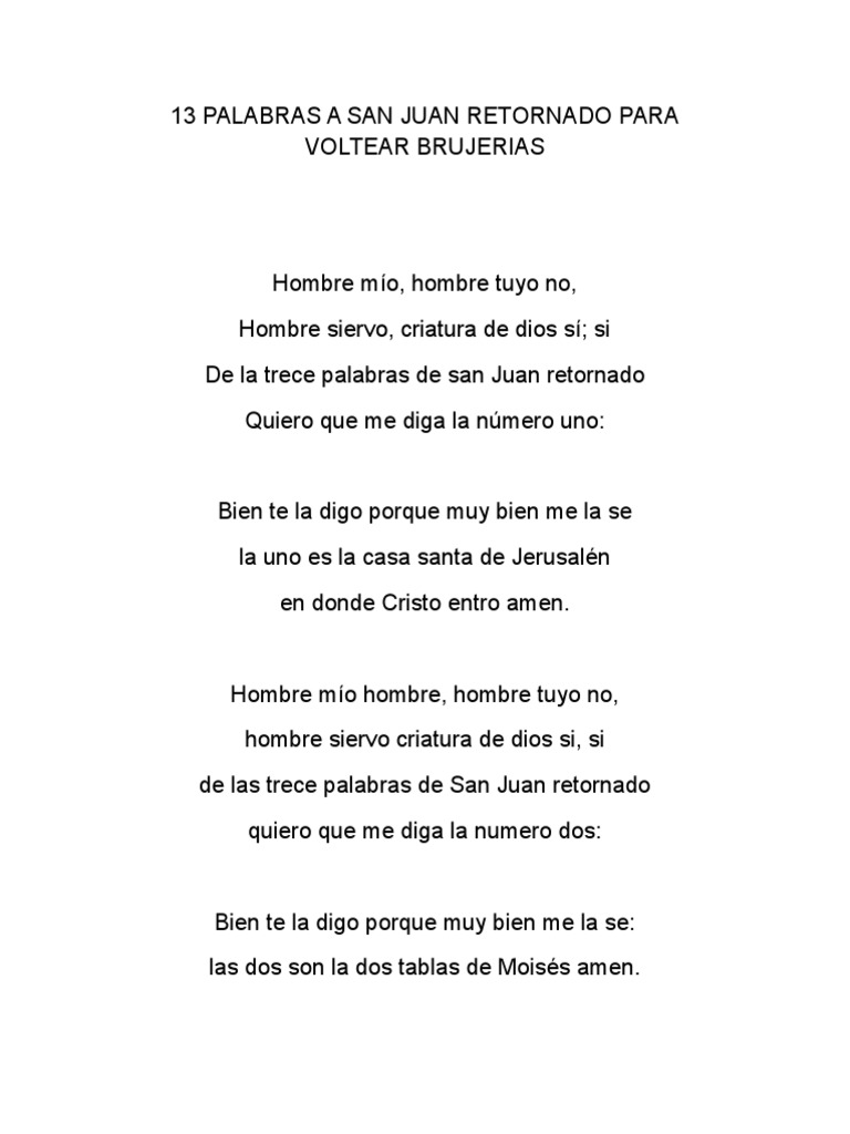 13 Palabras A San Juan Retornado para Voltear Brujerias PDF María