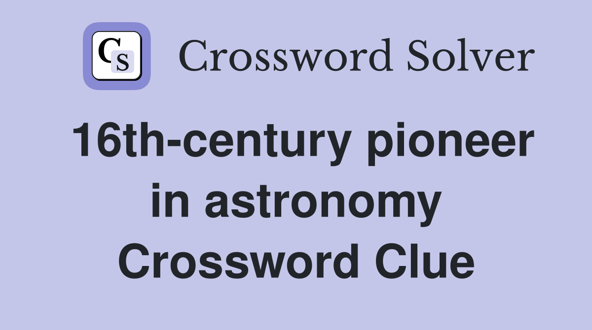 August 13, 2022 answer of 16th century pioneer in astronomy clue in nyt crossword puzzle. The crossword solver found 30 answers to 16th century pioneer in astronomy, 5 letters crossword clue. Take a glimpse at august 13 2022 crossword. We solved this clue, that last appeared on august 14, 2022 in a n.y.t crossword puzzle and the answer had five.