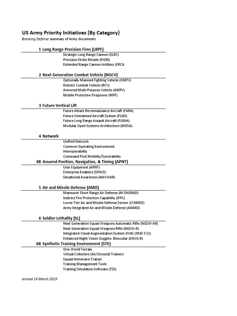 Army 30Plus Priorities Revised
