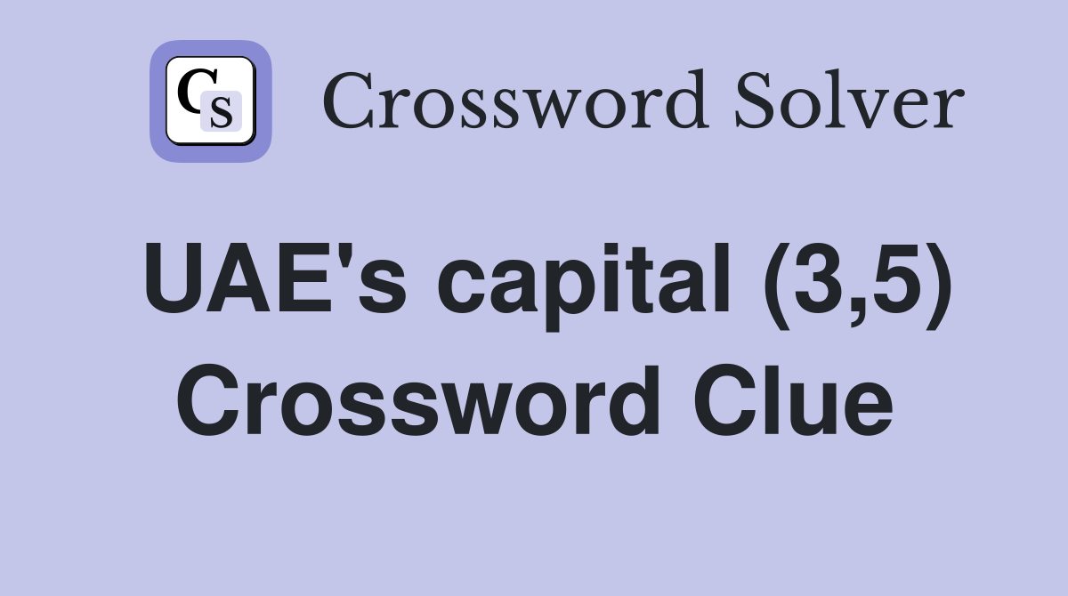 UAE's capital (3,5) Crossword Clue Answers Crossword Solver