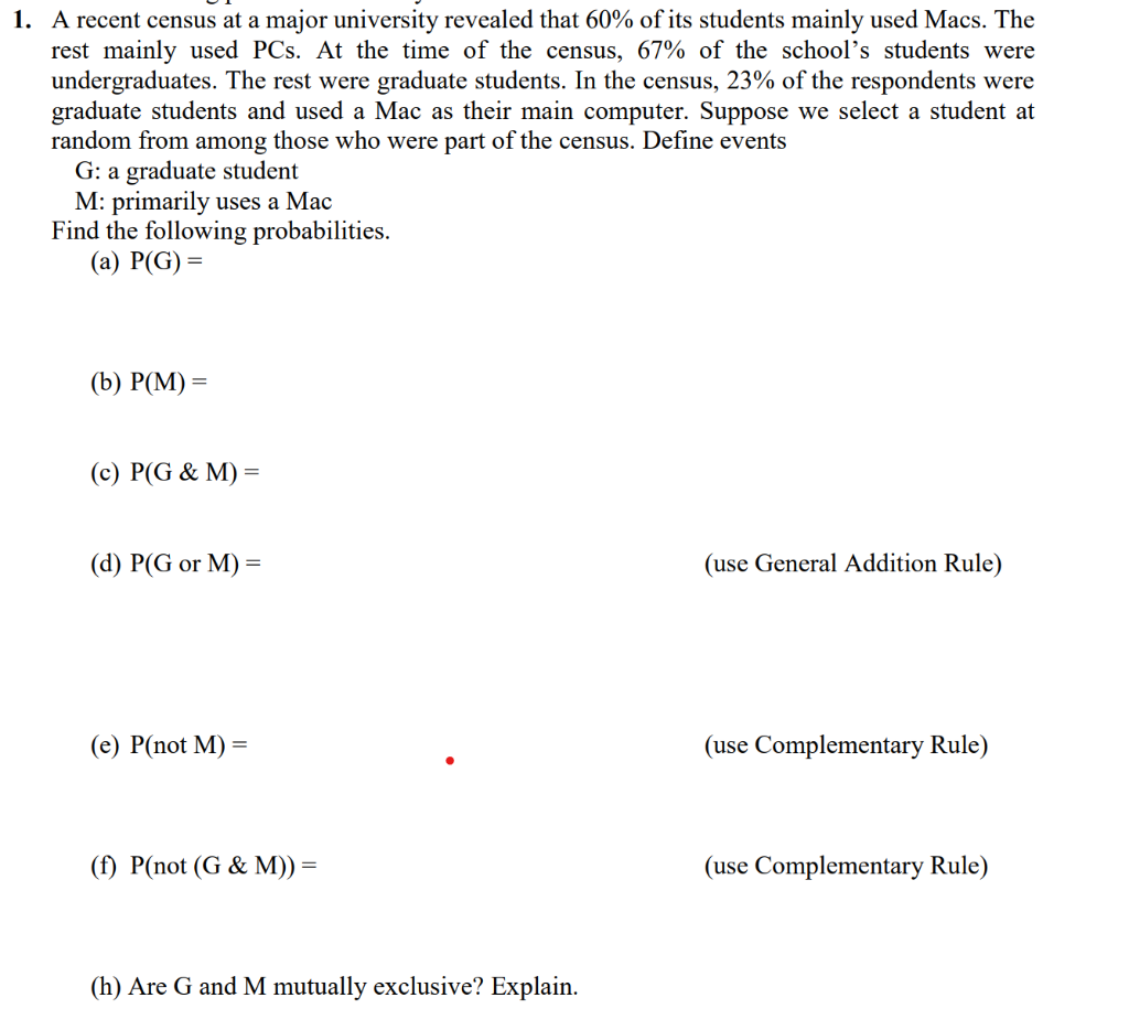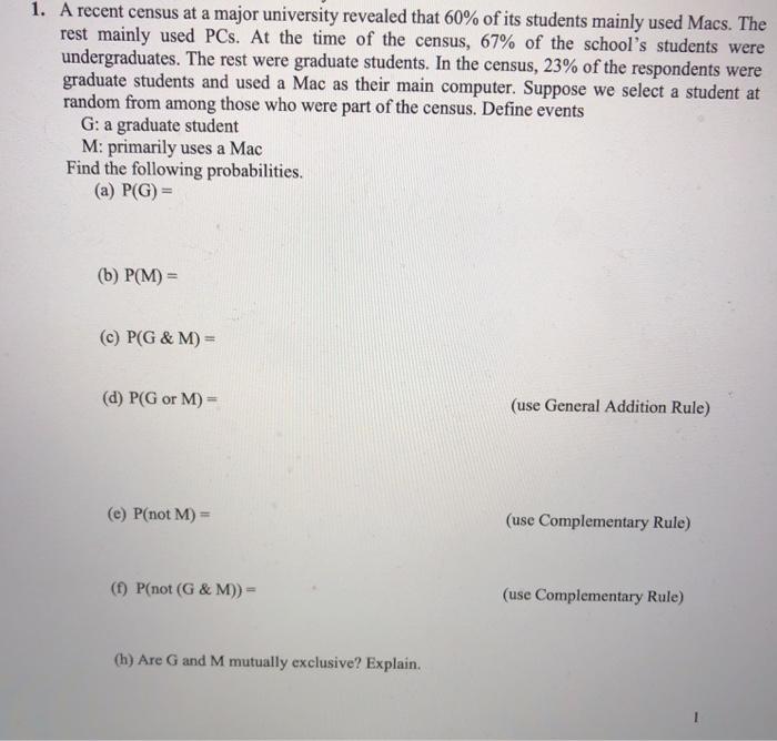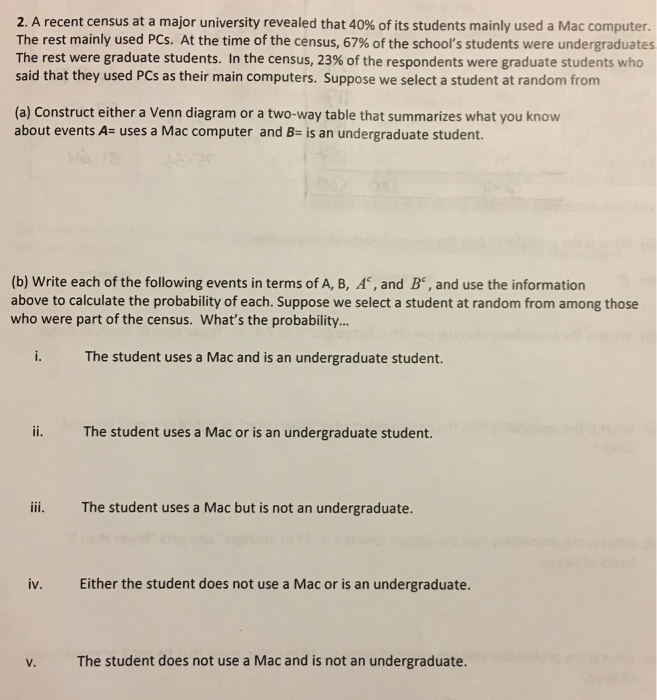 A recent census at a major university revealed that 60% of its students mainly used macs. At the tim of the census, 67% of. A recent census at a major university revealed that 60% of its students mainly used macs. At the time of the census, 67 %. In the census, 23 % of.