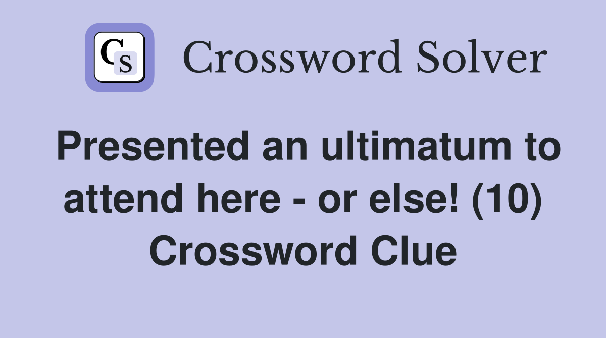 Presented an ultimatum to attend here or else! (10) Crossword Clue