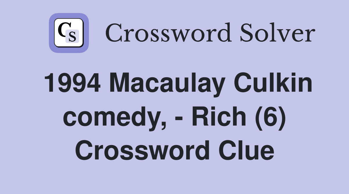 1994 Macaulay Culkin comedy, Rich (6) Crossword Clue Answers