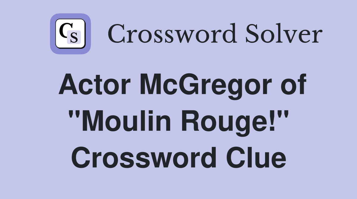 Actor McGregor of "Moulin Rouge!" Crossword Clue Answers Crossword