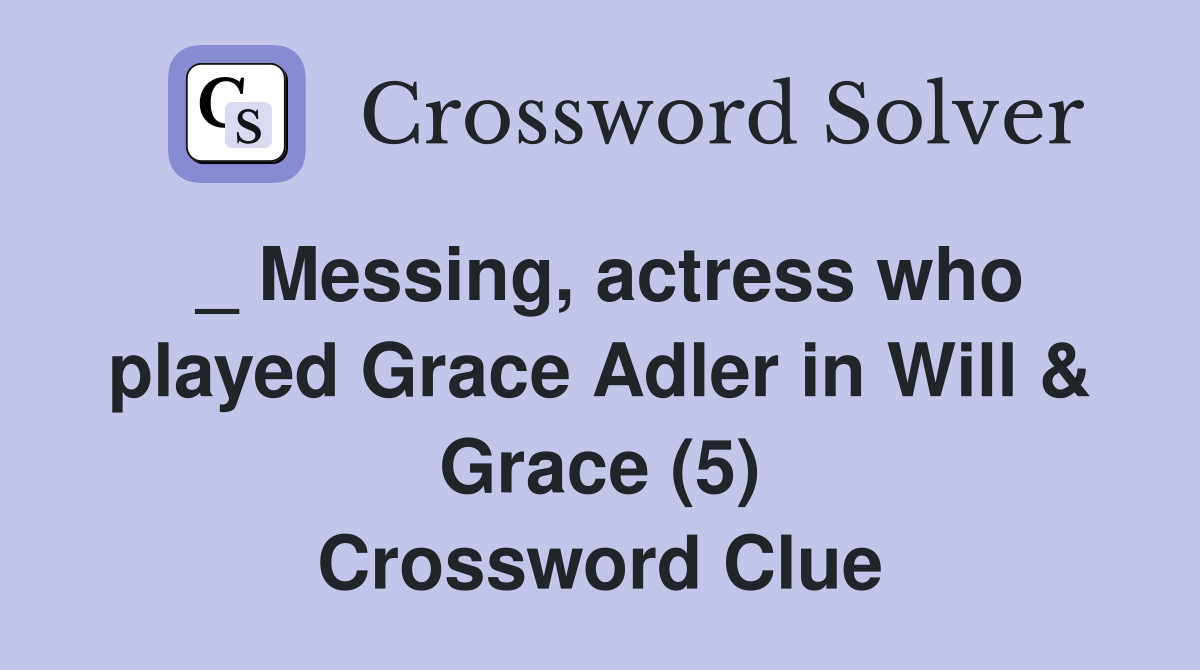 For additional clues from the today’s puzzle please use our master topic for. The clue was actress messing of will & grace.