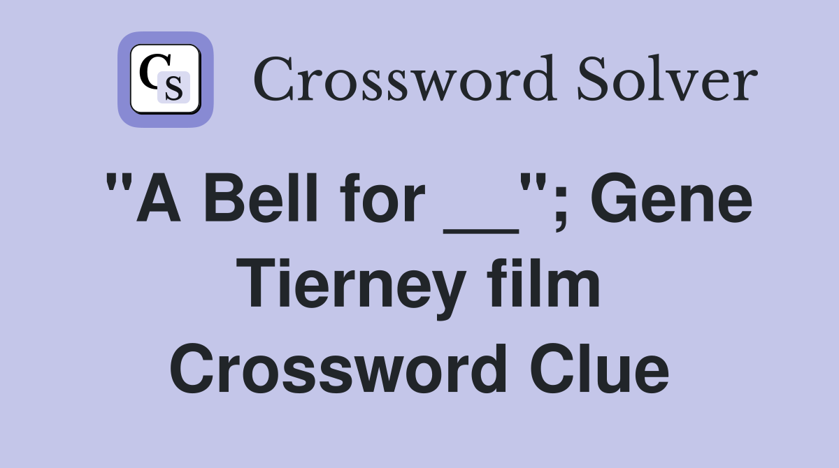 "A Bell for __"; Gene Tierney film Crossword Clue Answers Crossword