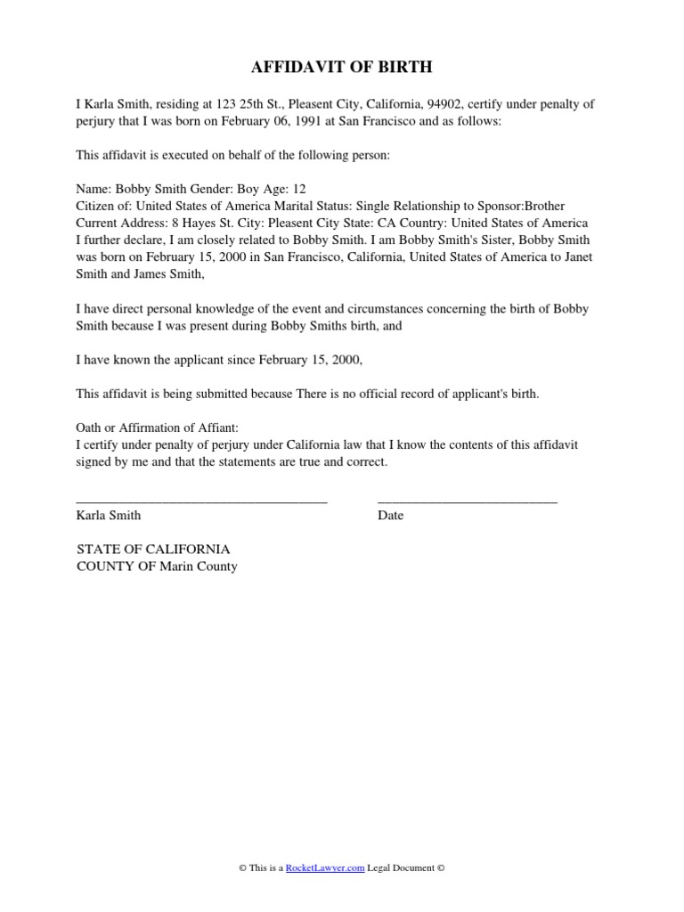Learn how to create an affidavit of birth when you need a proof of your citizenship or a new birth certificate. Download a free fillable pdf. An affidavit of birth is a document used to declare the facts of a person's birth in situations where the birth certificate is unavailable or deemed.