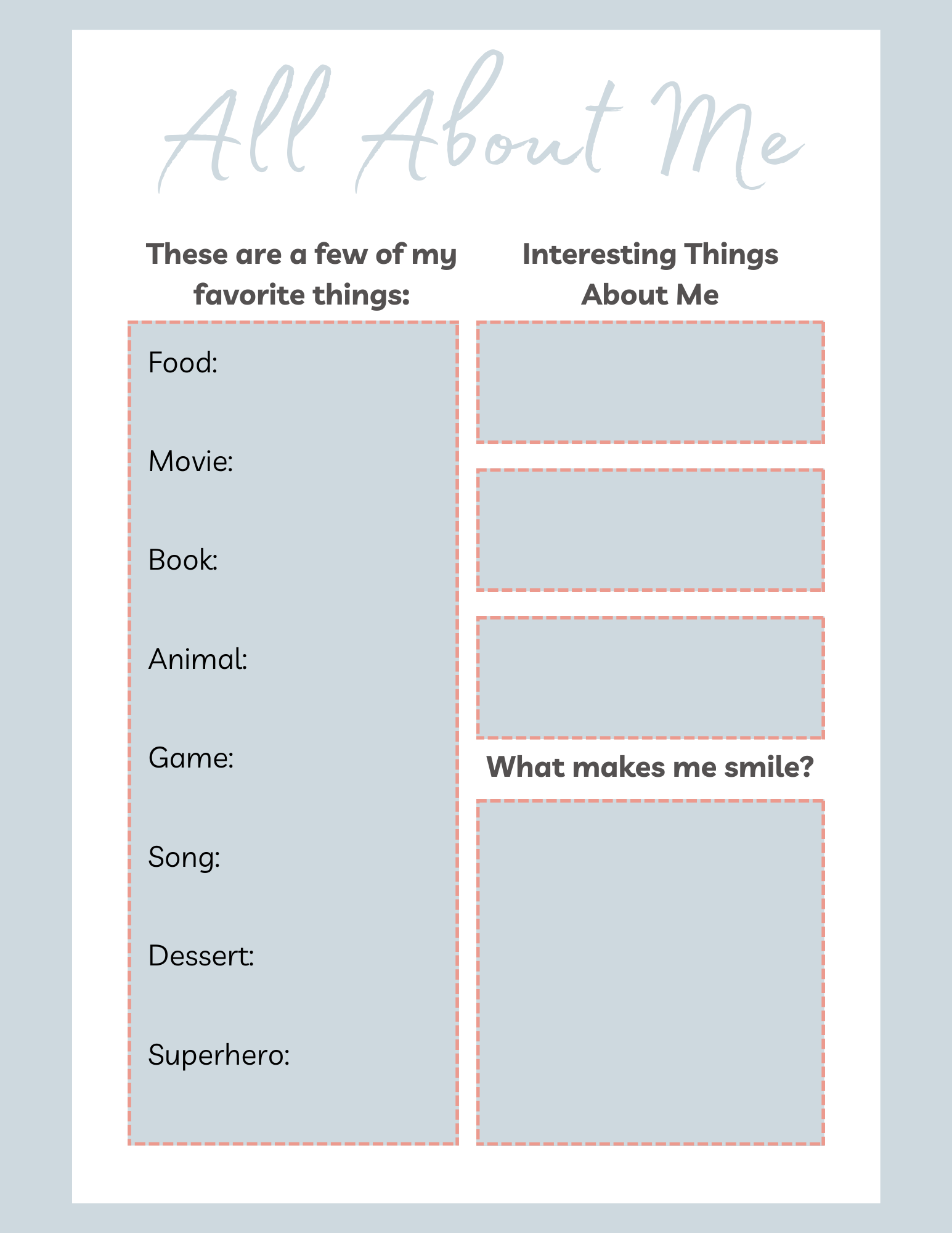 All About Me Free Printables