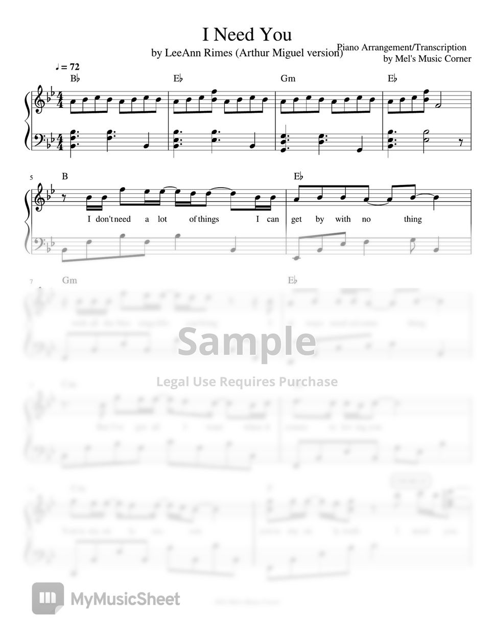 LeeAnn Rimes I Need You (piano sheet music) Sheets by Mel's Music Corner
