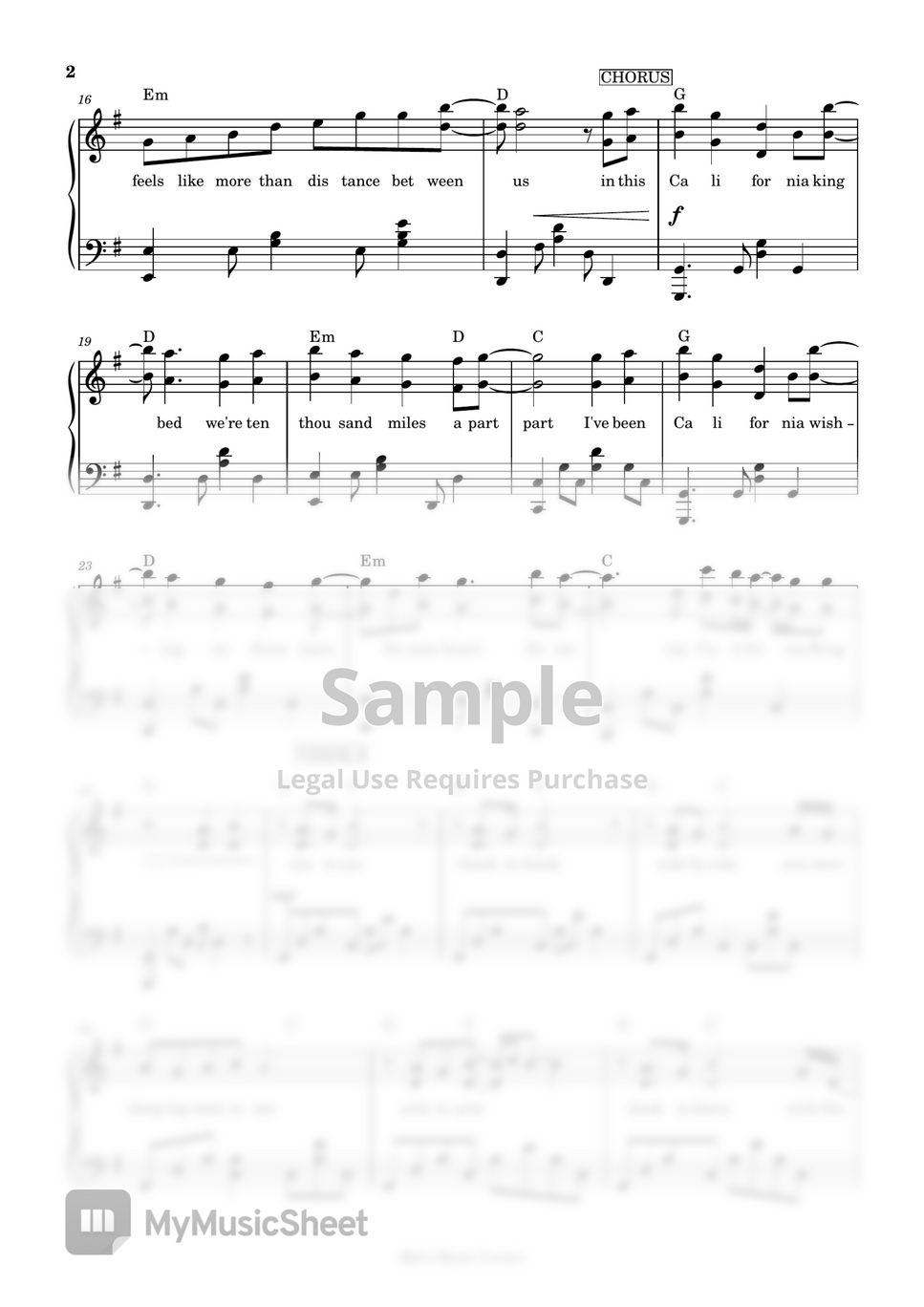 Rihanna California King Bed (piano sheet music) Sheets by Mel's Music