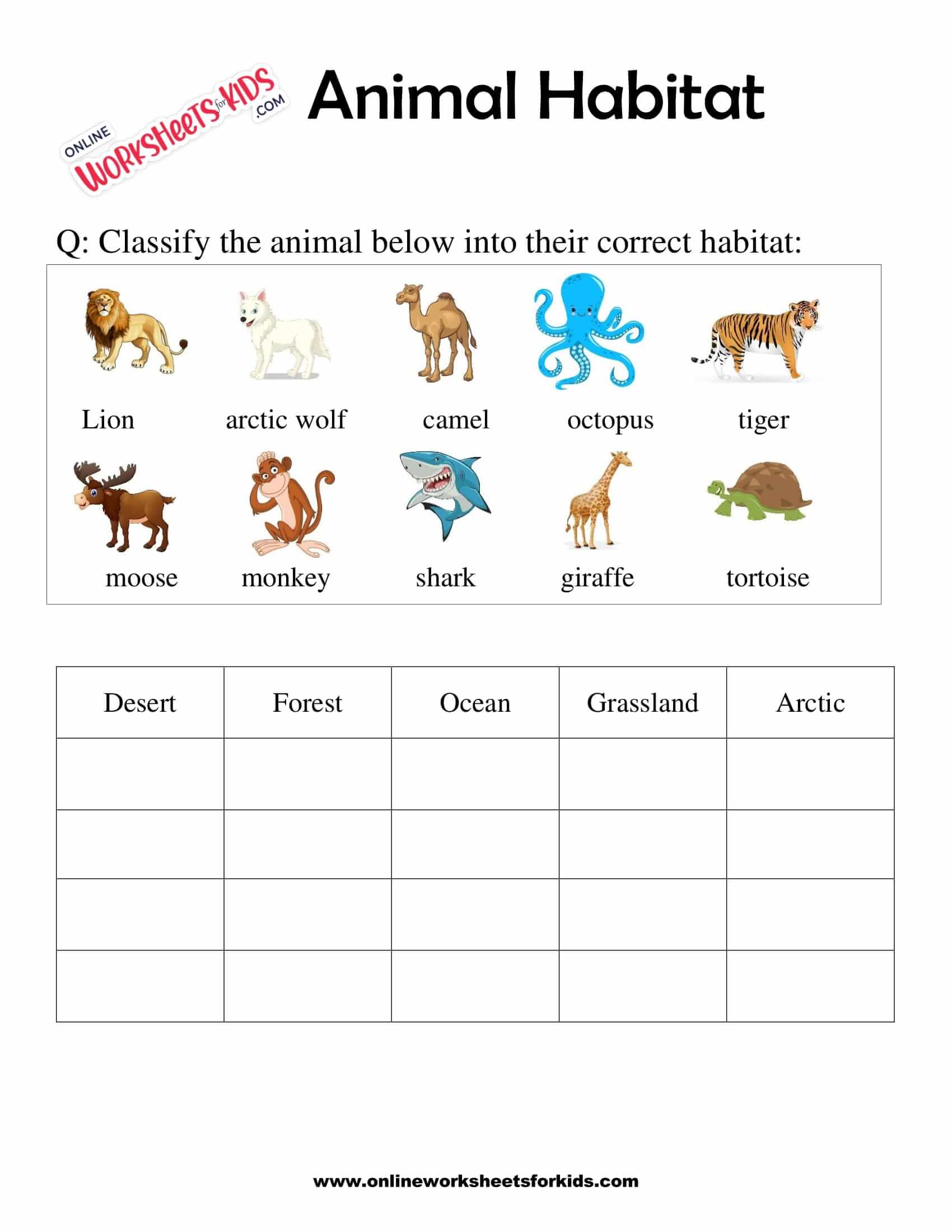 Learn about habitats, adaptations, migration,. Match animals to their habitats, label diagrams, create. Download and use these worksheets to teach kids about animals and their habitats. Find a variety of teaching resources for exploring animal habitats, from desert to forest, with worksheets, printables, games and more. Grassland, forest, ocean and the arctic.