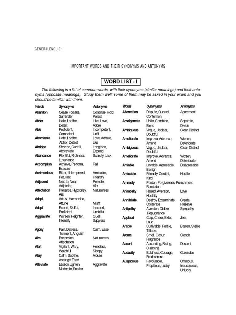 SSC Antonyms PDF PDF Cognitive Science Psychology
