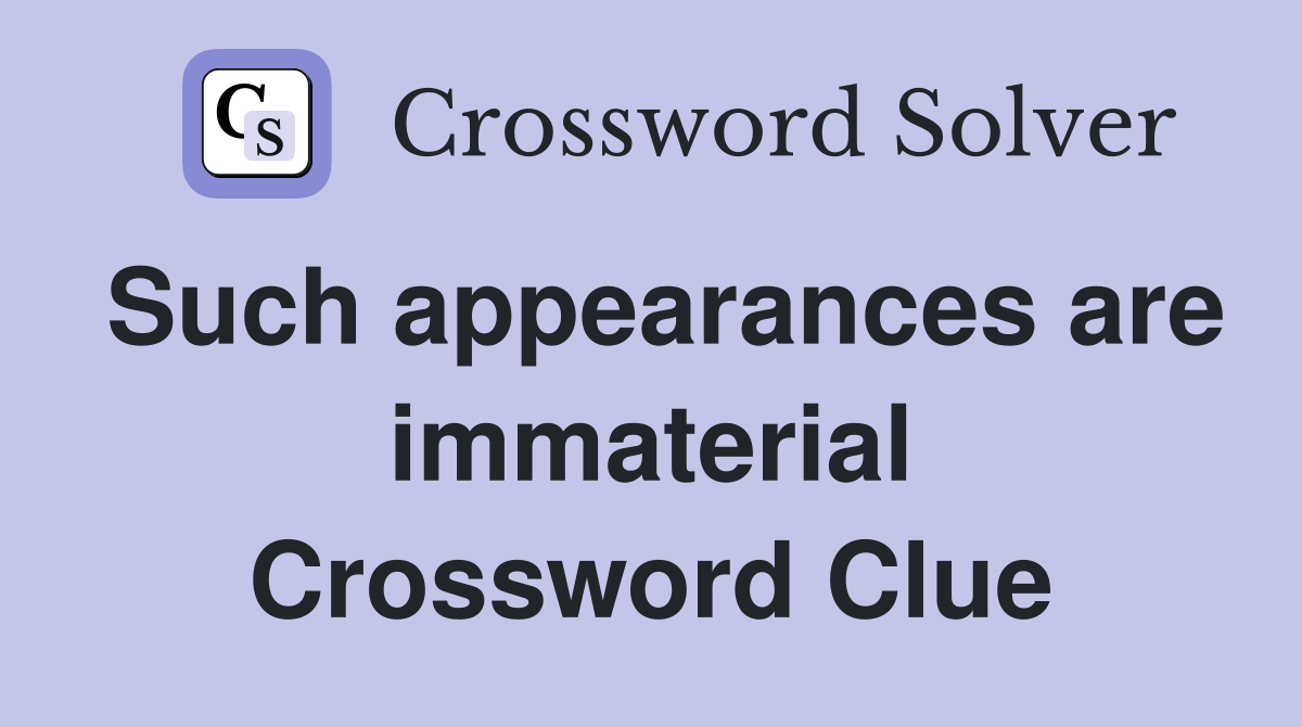 Such appearances are immaterial Crossword Clue Answers Crossword Solver
