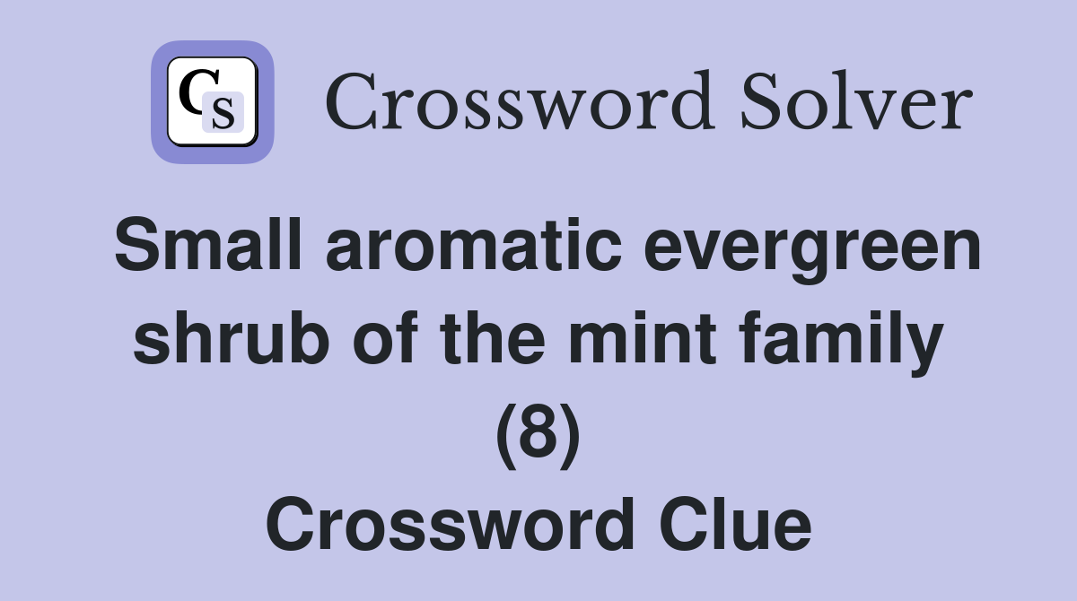 The crossword solver finds answers to. The crossword solver finds answers to classic. The crossword solver found 30 answers to aromatic evergreen shrub, 6 letters crossword clue. We have 3 solutions to the crossword puzzle aromatic evergreen.