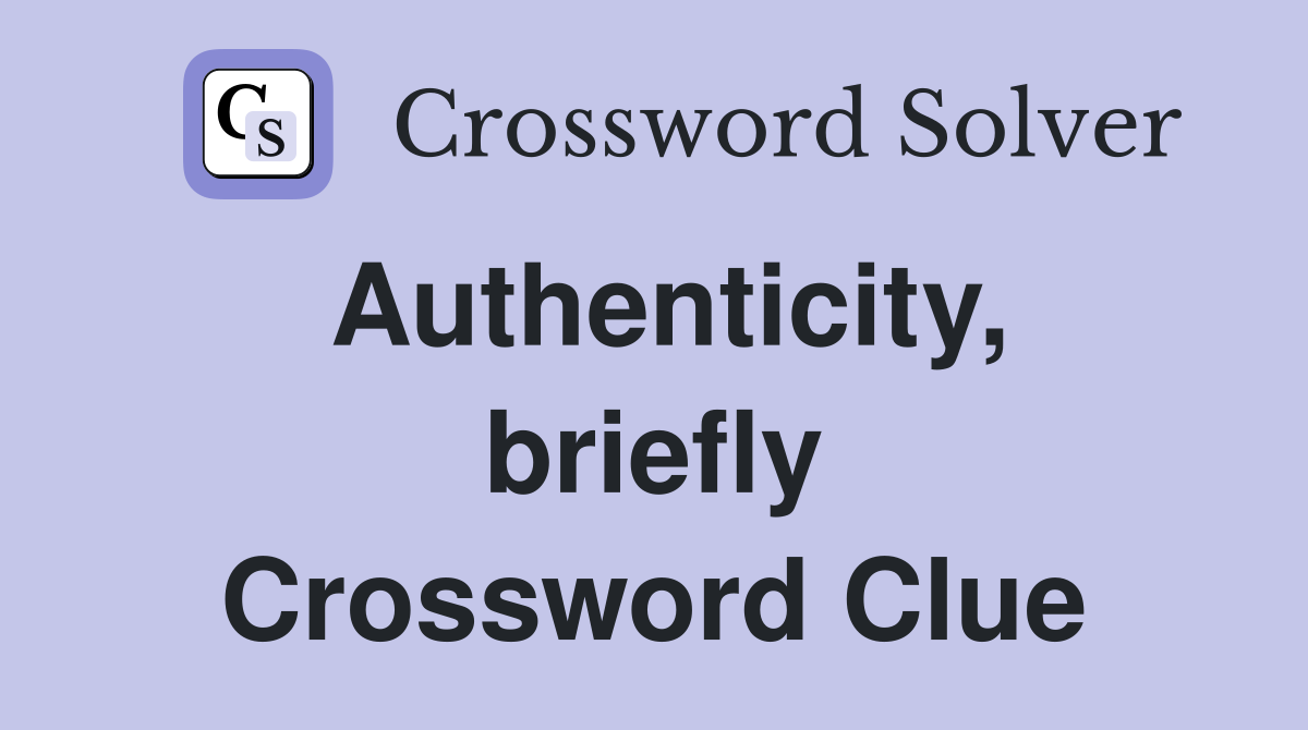 Authenticity, briefly Crossword Clue Answers Crossword Solver