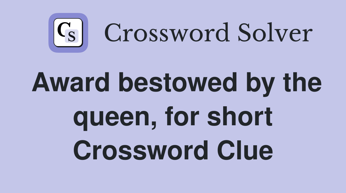 Award bestowed by the queen, for short Crossword Clue Answers