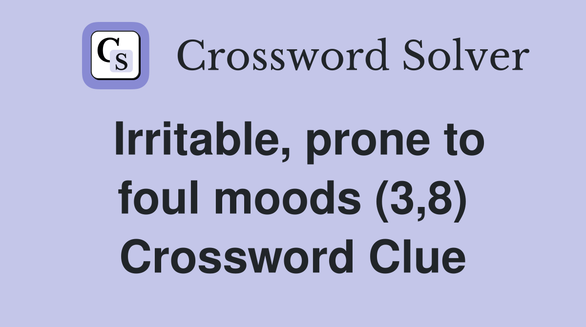 Irritable, prone to foul moods (3,8) Crossword Clue Answers
