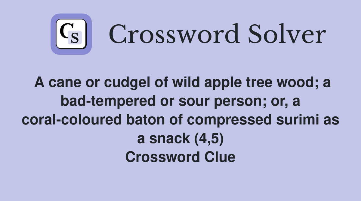 A cane or cudgel of wild apple tree wood; a badtempered or sour person