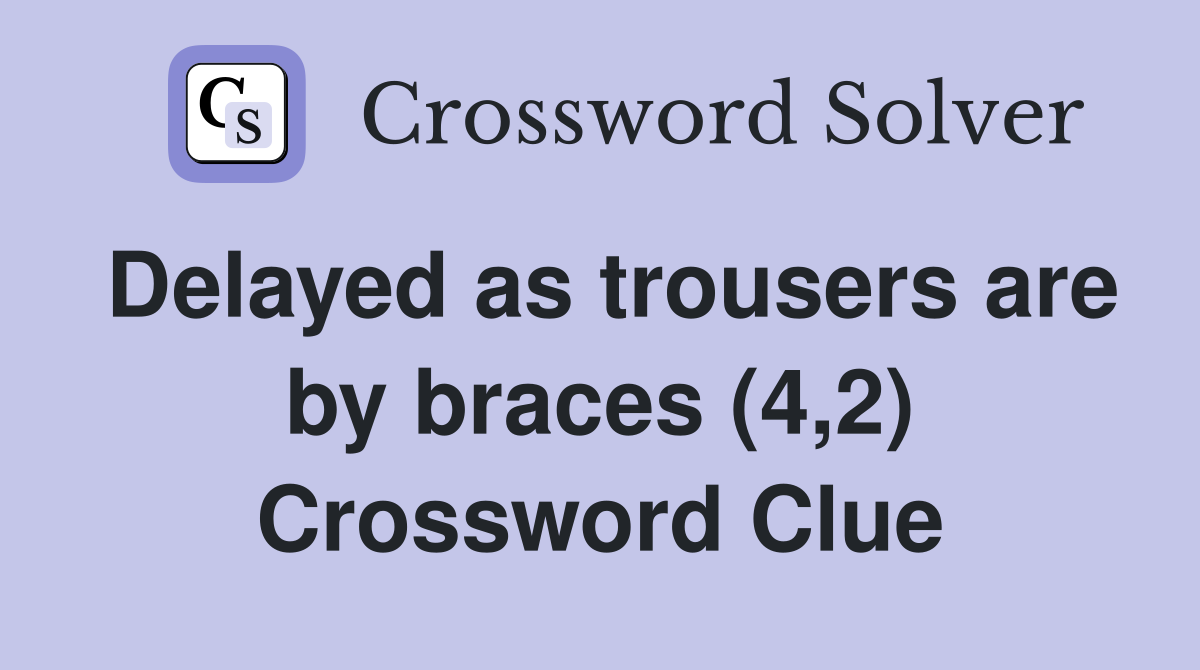 The crossword solver found 30 answers to . Here is the answer for the crossword clue baggy trousers last seen in times concise puzzle. If you're looking for help with the ___ pants (baggy trousers) clue in daily themed crossword, we have the answer to assist you. Here is the answer for the crossword clue __ pants: