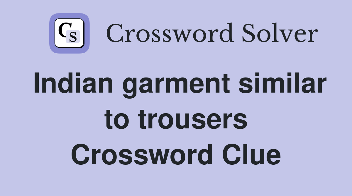 Indian garment similar to trousers Crossword Clue Answers Crossword