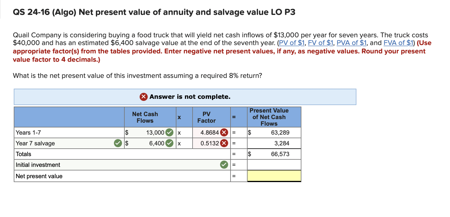 Solved QS 2416 (Algo) Net present value of annuity and