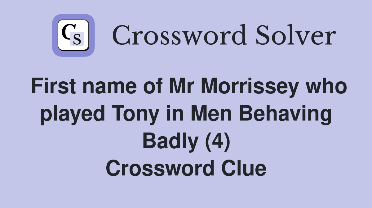 First name of Mr Morrissey who played Tony in Men Behaving Badly (4