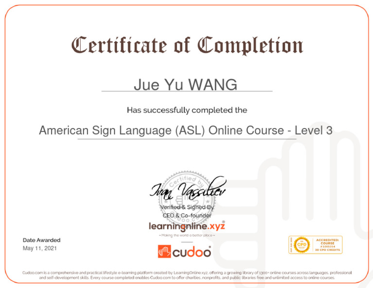 CudooCertificateASL Cudoo