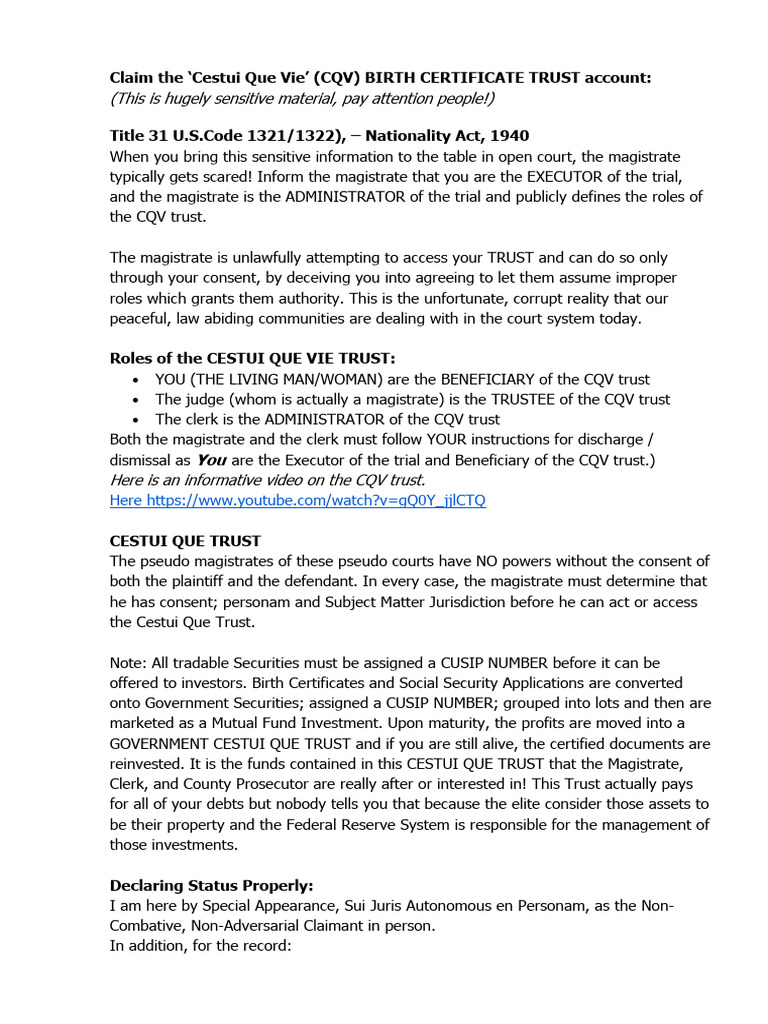Claim the BIRTH CERTIFICATE TRUST PDF Magistrate Arrest