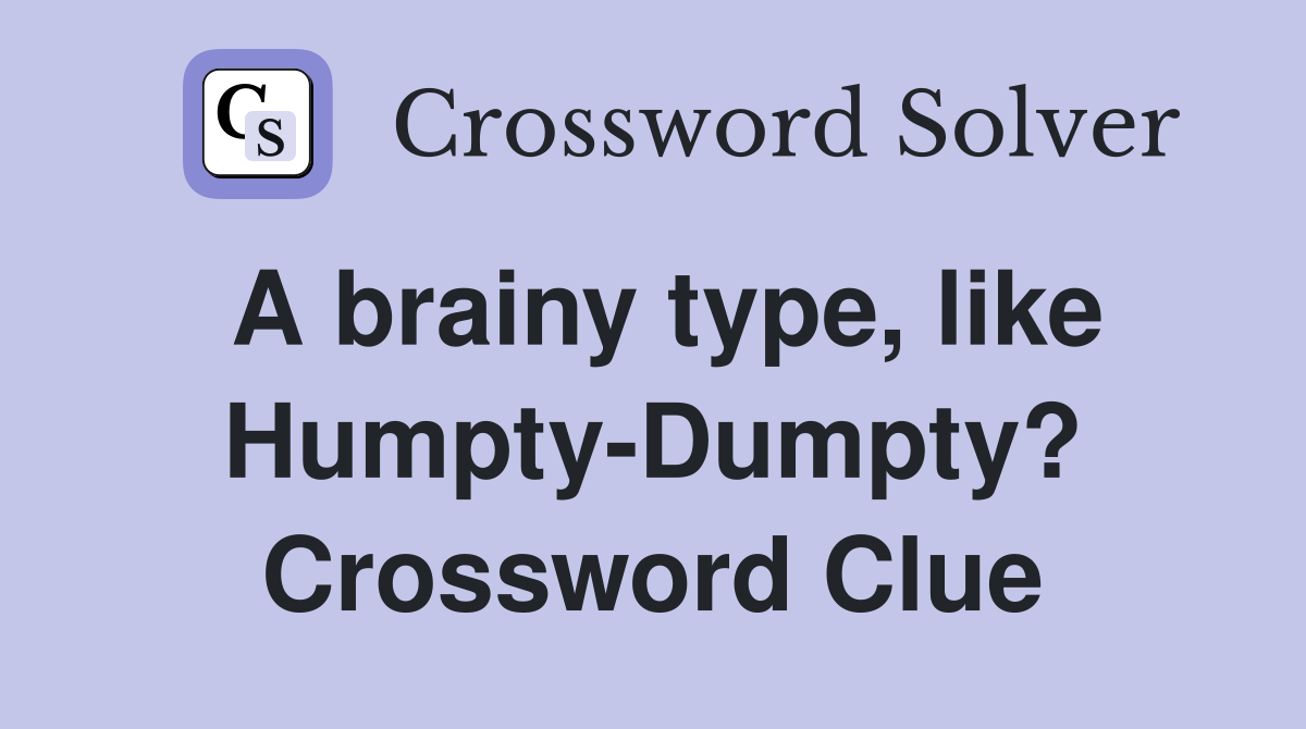 A brainy type, like HumptyDumpty? Crossword Clue Answers Crossword