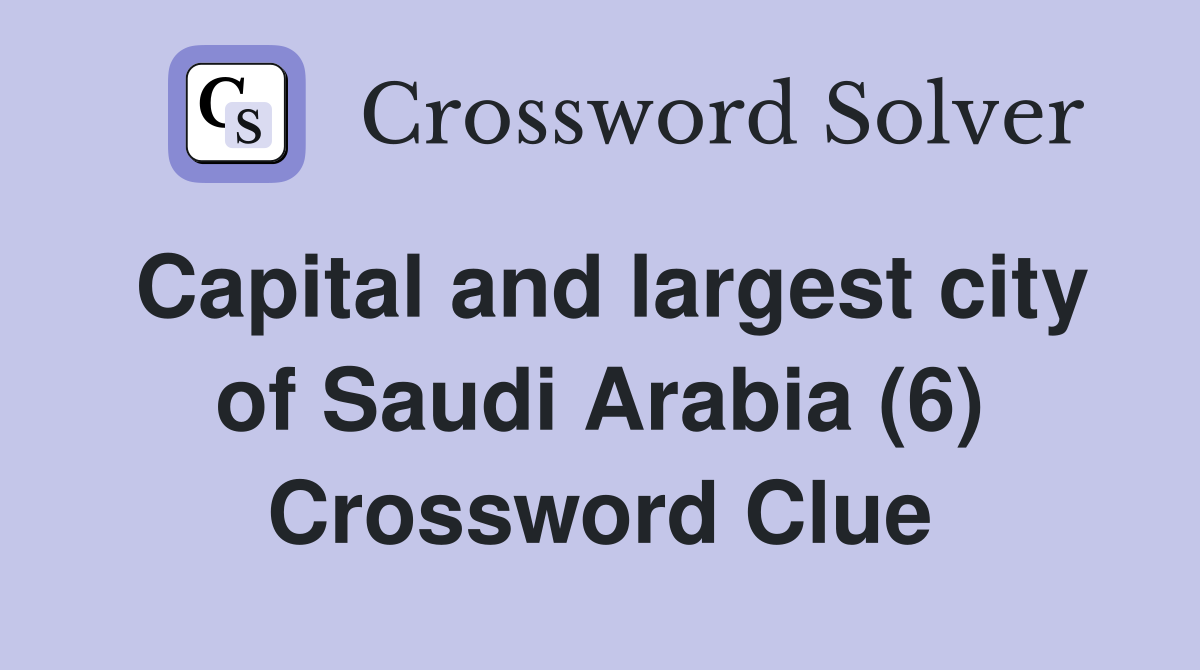 This clue was last seen on june. The top solutions are determined by popularity, ratings and frequency of searches. We found 40 solutions for the capital of saudi arabia (6). The crossword solver found 30 answers to capital of saudi arabia (6), 6 letters crossword clue. We will try to find the right answer to this particular crossword clue.