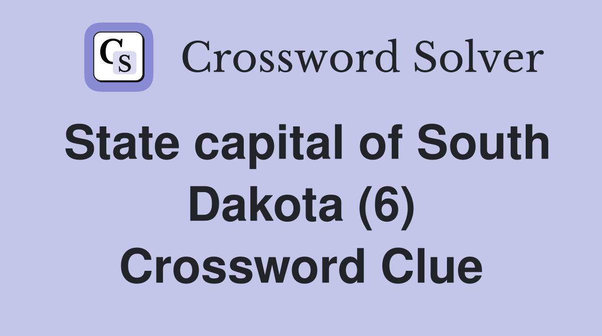 Capital of south dakota is a crossword puzzle clue that we have spotted 18 times. The crossword solver found 30 answers to state capital of south dakota (6), 6 letters crossword clue. Here is the answer for the crossword clue capital of south dakota last seen in premier sunday puzzle. The crossword solver finds answers to. The crossword solver found.