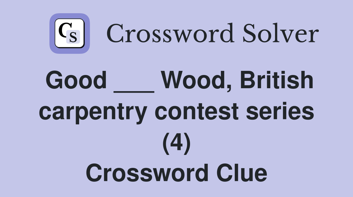 Good ___ Wood, British carpentry contest series (4) Crossword Clue