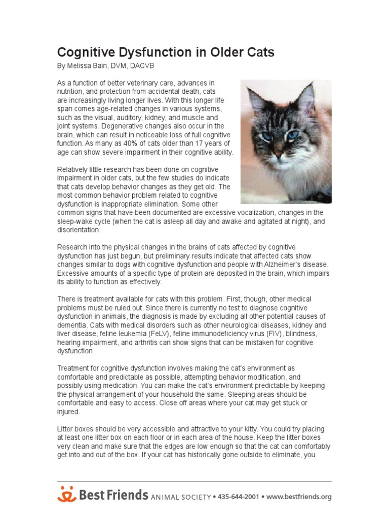 One such issue is a decline in cognitive abilities (eg, learning, memory, attention, spatial abilities) as a result of ageing changes. Feline cognitive dysfunction (fcd) is a cognitive disease prevalent in cats, directly related to the brain aging, leading to changes in awareness,. Cognitive dysfunction syndrome (cds) is one of the most underdiagnosed conditions in dogs and cats. Diagnosis of this condition is typically a.