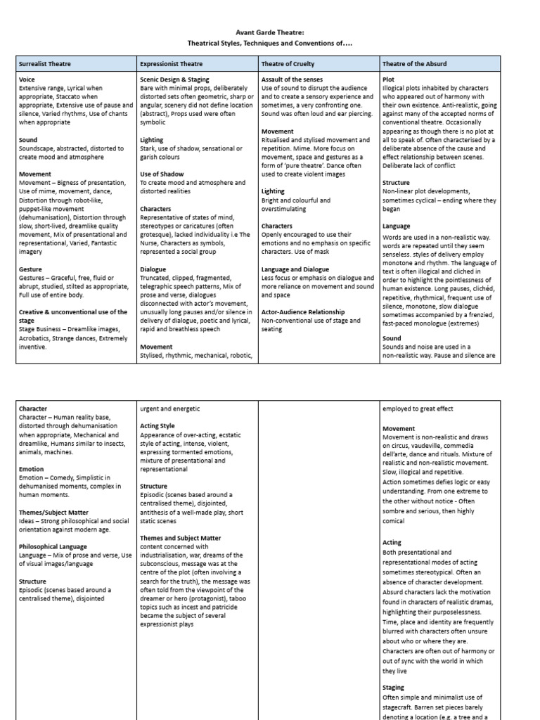 Avant Garde Theatre Techniques & Conventions PDF Theatre Dances