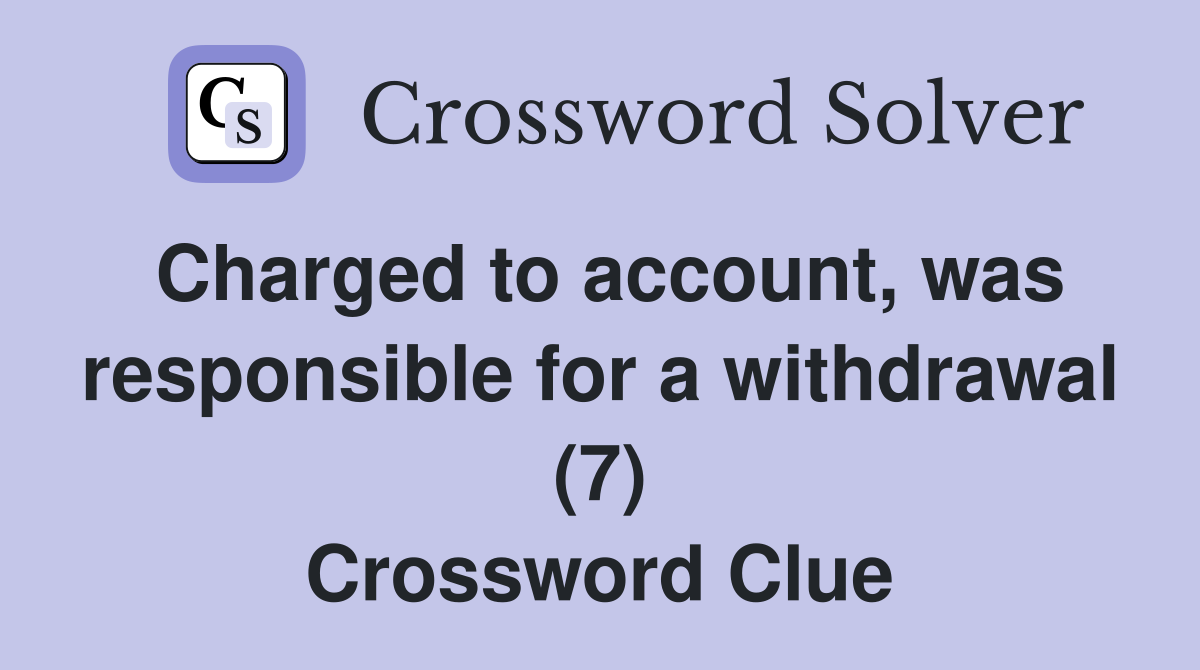 Charged to account, was responsible for a withdrawal (7) Crossword