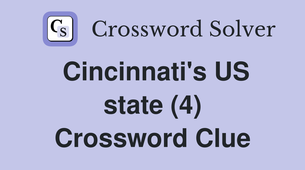 Cincinnati's US state (4) Crossword Clue Answers Crossword Solver