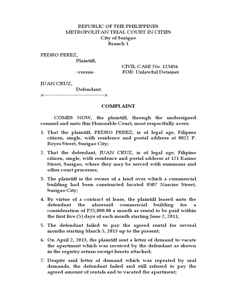 Civil Case Summary Lawsuit Complaint