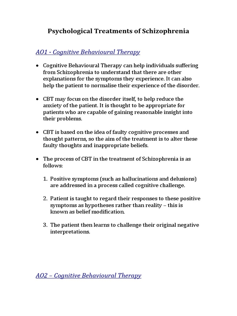 Psychological Treatments of Schizophrenia CBT Notes PDF Cognitive