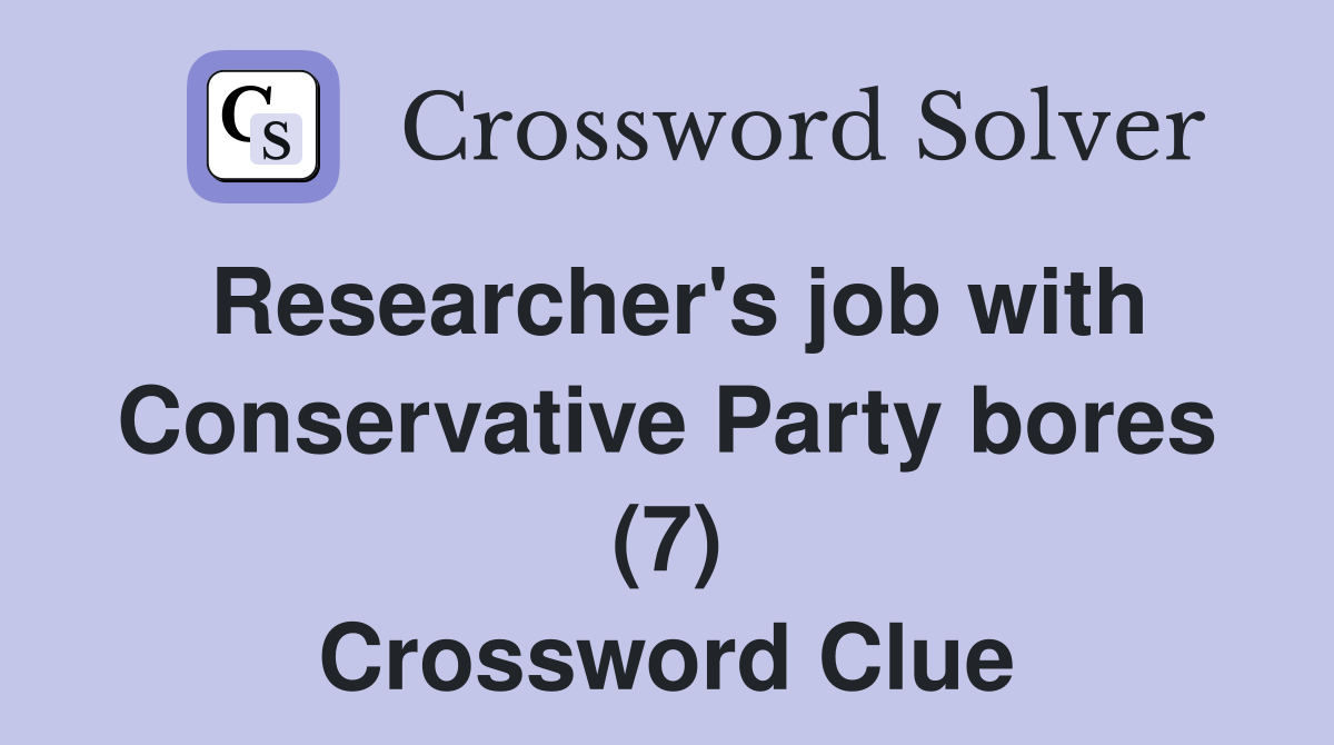 Researcher's job with Conservative Party bores (7) Crossword Clue