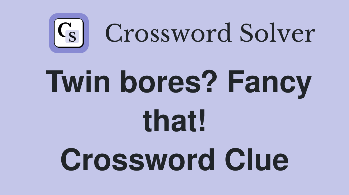 Twin bores? Fancy that! Crossword Clue Answers Crossword Solver