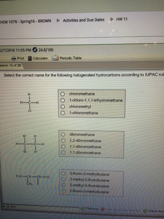 Solved Select the coned name for the following halogenated