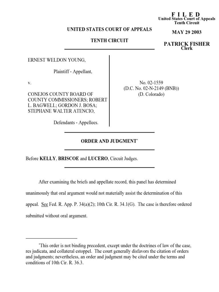 Young v. Conejos County Board, 10th Cir. (2003) Download Free PDF