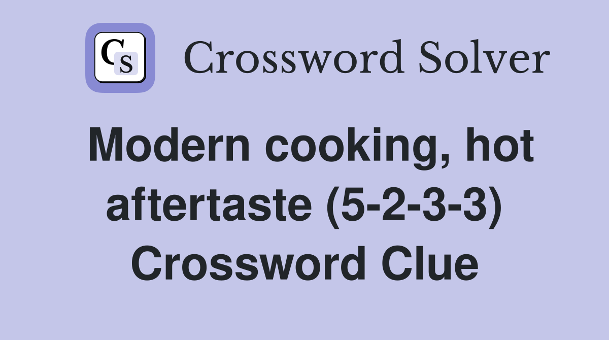 Modern cooking, hot aftertaste (5233) Crossword Clue Answers
