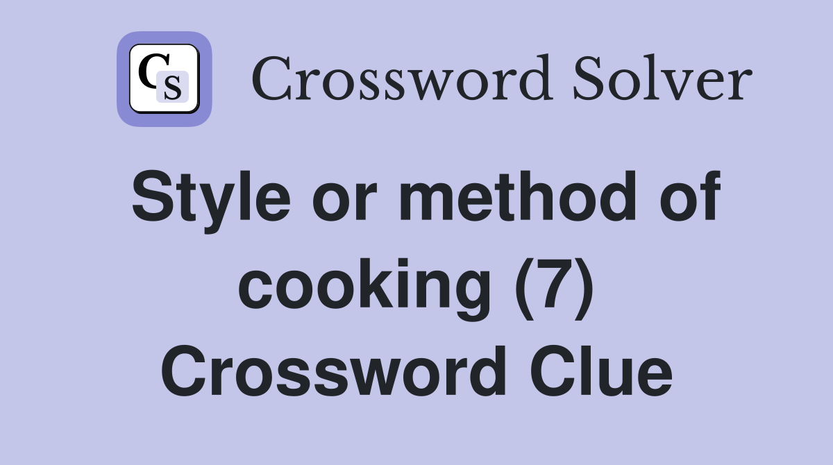 Style or method of cooking (7) Crossword Clue Answers Crossword Solver