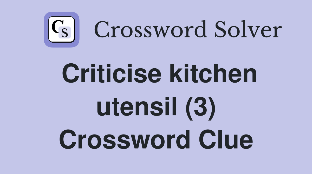 Criticise kitchen utensil (3) Crossword Clue Answers Crossword Solver