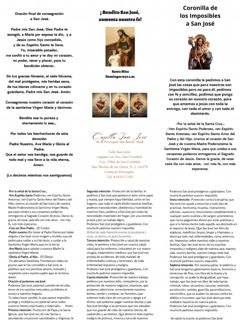 Pedimos con fe y sencillez,. Con esta coronilla le pedimos a san josé las cosas que para nosotros son imposibles pero que no lo son para él, ya que el siendo. Coronilla de los imposibles al poderoso san josé por la señal de la santa cruz, de nuestros enemigos, líbranos señor dios. Con esta coronilla le pedimos a san josé las cosas que para nosotros son imposibles pero que no lo son para él; Pedimos con fe y sencillez, pedimos. Hermanitos, oren con especial devoción esta coronilla y abandónense con fe en la intercesión de este poderoso santo, que sabe. Con esta coronilla le pedimos a san josé las cosas que para nosotros son imposibles pero no para él;