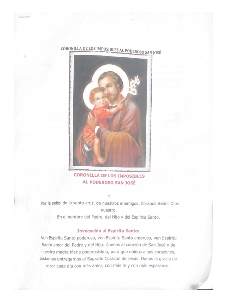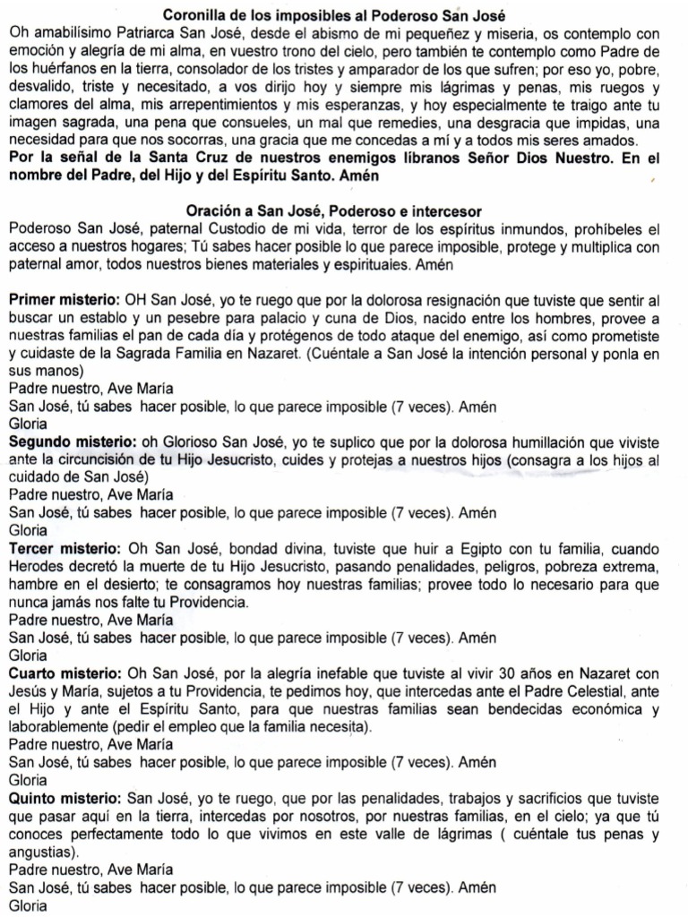 Coronilla de Los Imposibles Al Poderosísima San José para PDF