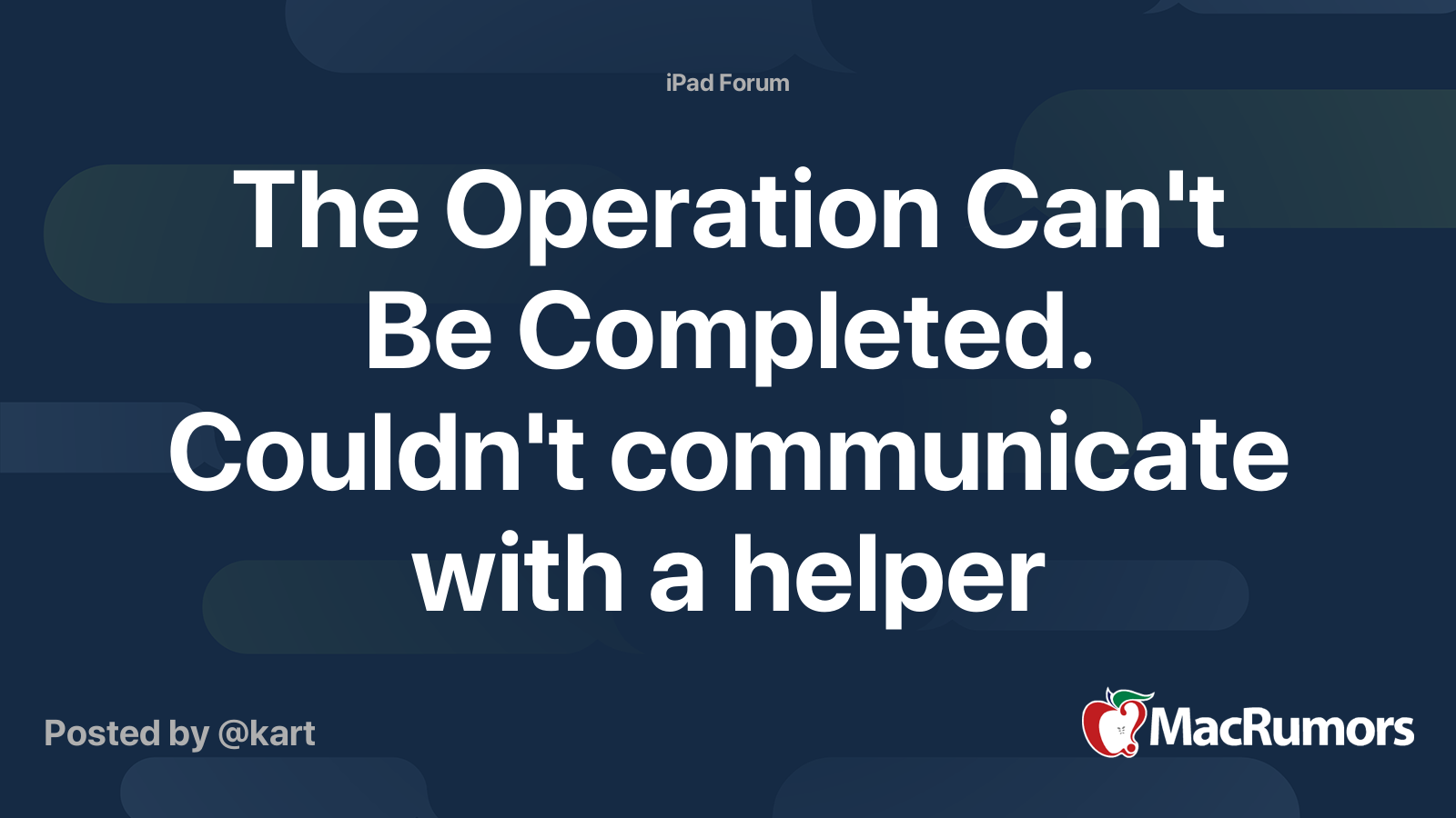 The Operation Can't Be Completed. Couldn't communicate with a helper